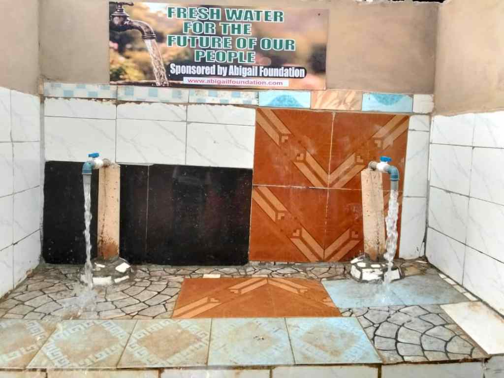 During the winter we were able to finish all the installations for our municipal water supply. We have build a huge steel foundation that now carries four water tanks. In front of the premises we have build an tiled area with two faucets where the residents now can get the fresh water. As you can see our water supply is already very frequented.