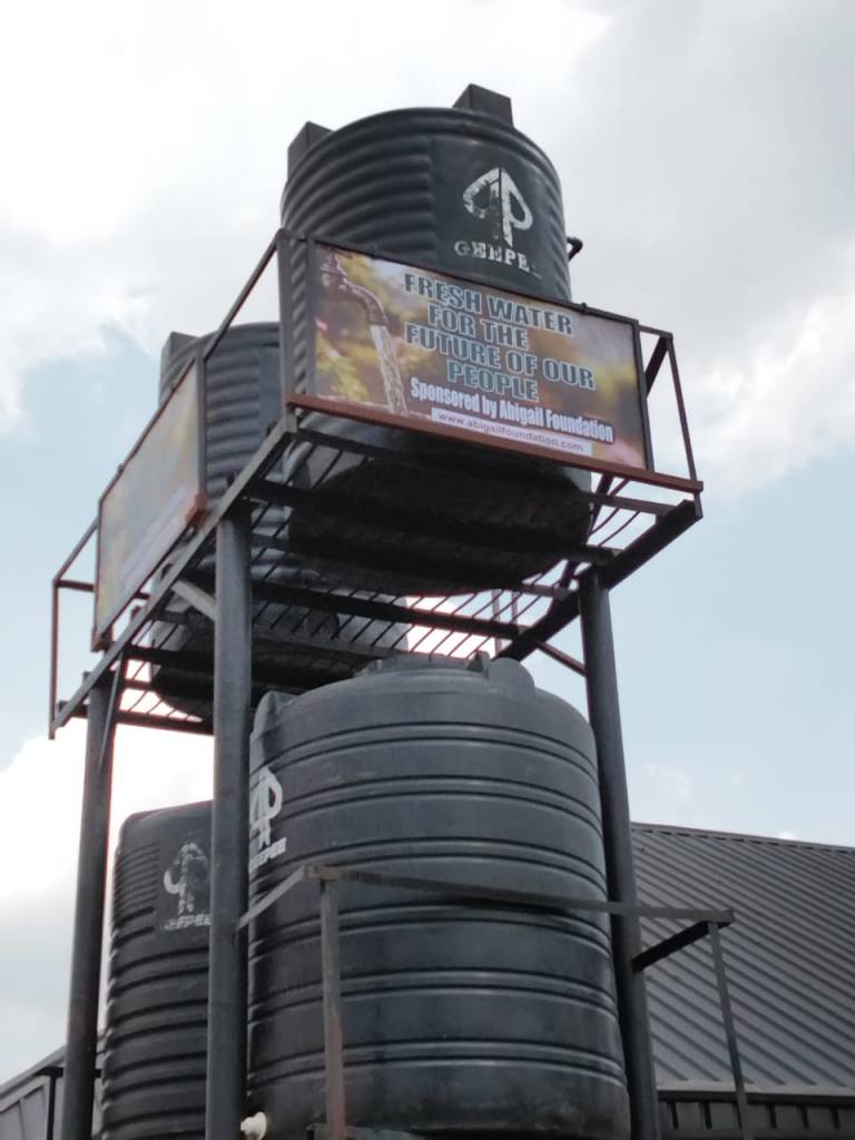 Right now we are working on a free municipal water supply. The hole has to be drilled some hundred meters deep to find some fresh and clean ground water. The water tanks will be installed in the next step.